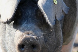 Away across the farm of perfect little hedge lined fields we meet the big boy, Jerry. “We called him after you” said Ruth. Paul and I look puzzled. “Well” she laughed “Graham thought your name was Jerry…..! “ A compliment of sorts, no doubt! Dina is the favourite sow who likes to have her ears tickled.