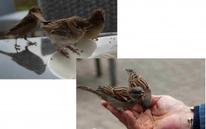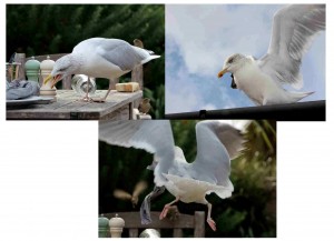 While sparrows queue in ordered battalions ready to pinch your pasty off your plate or eat it out of your hand, the seagulls have no such manners and simply move right in crash landing on the table and grabbing what they can with varied degrees of success!