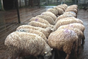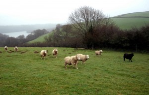 We feed the little wethers by the tiny, top barn in the field we call “Dainty”, named after that erstwhile naughty pony. We move on to count the yearling ewe lambs in “Five Acre” pausing to look across the valley at far off Dartmoor dancing in the distant mist. Finally we have a word with big Larry and the rather grumpy rams, on their own now in “Steep Field”, before we retrace our steps down to the valley, squelching our way back to the yard.