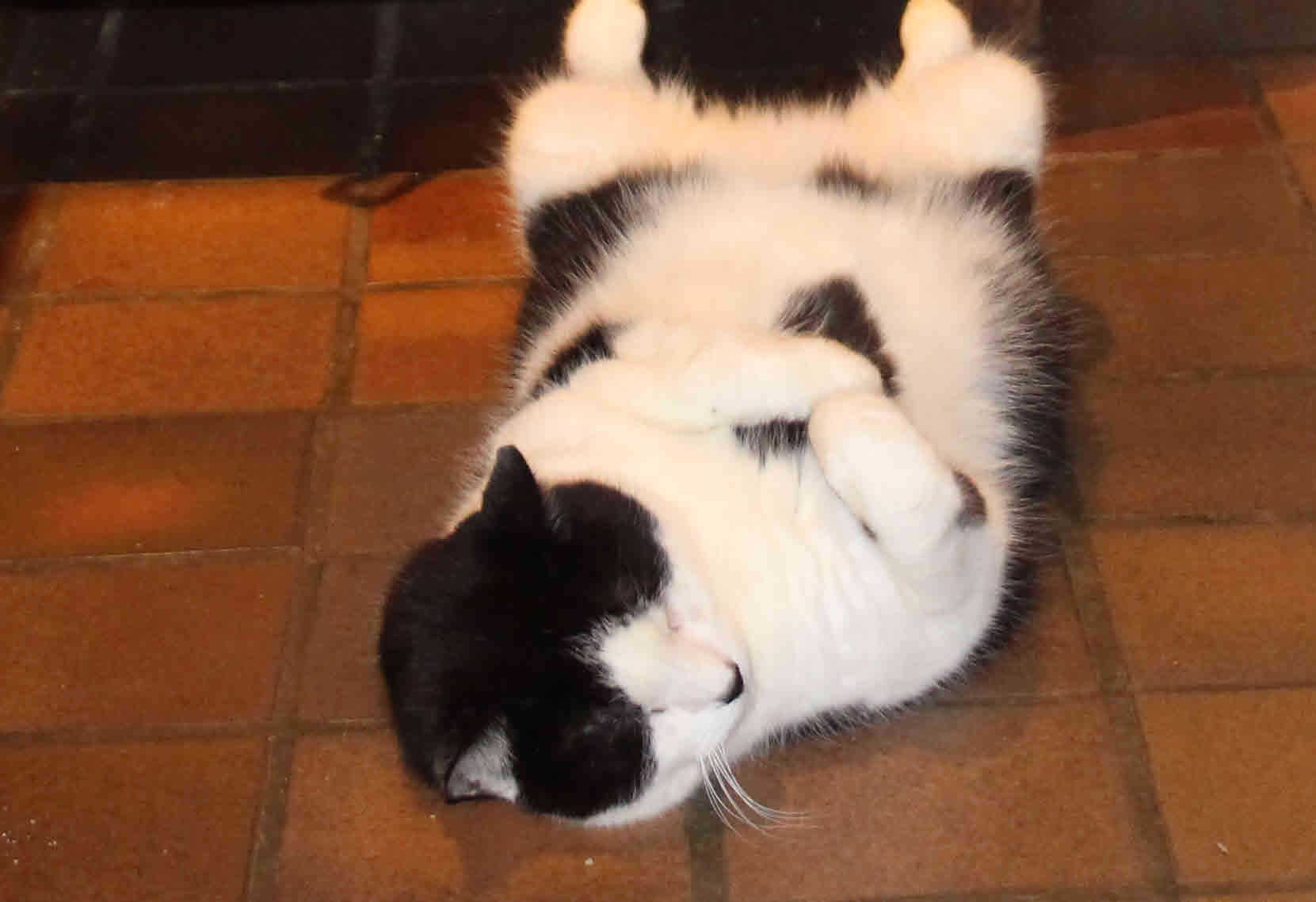 Our Labradors both look fixedly the other way pretending he is not there and Onion, our usually laid back cat, scuttles past him anxiously.